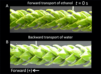 ▲视频3 南洋杉叶片结构功能表面上毛细升现象的促进和抑制。