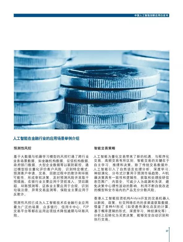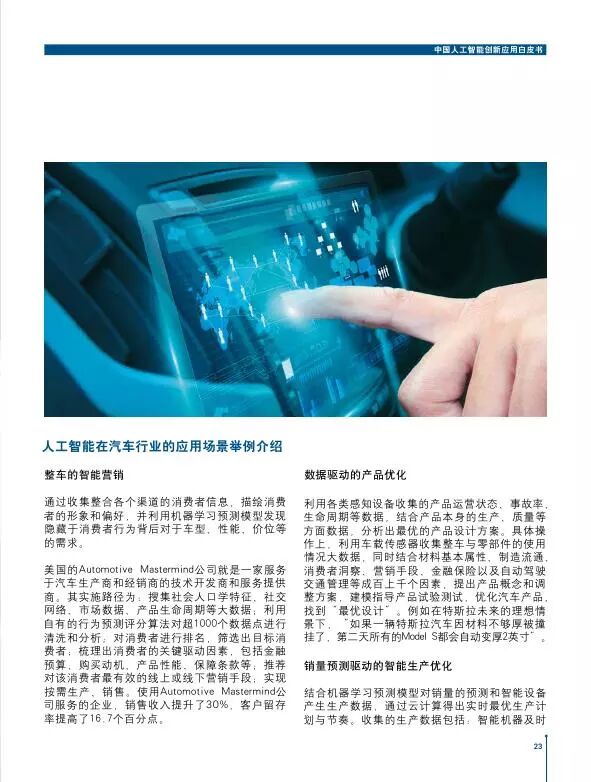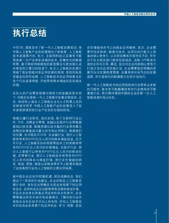 报告指出,中国人工智能企业在当下人工智能第三次浪潮中的发展势头良好,处于全球优势领先地位;金融、汽车、零售和医疗将会是受其影响最大、最具成熟发展基础与市场应用潜力的传统产业,制造、教育、通信行业也值得关注。微信后台回复:“人工智能”,获取本文报告。