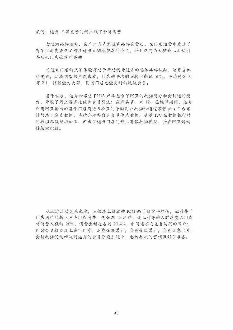 通过近百页的阐述,该报告全面而详实地介绍了阿里巴巴云零售服务生态系统的最新进展情况。尤其是,通过数十个全新案例的引入,对于当前最前沿、最领先的服务平台、服务工具、服务市场进行了具体介绍。而面对即将开展的“重构”,报告也从理论、实践等多个角度展开了阐述,向读者介绍了如何利用云零售服务生态系统展开全渠道、全业态的重构。