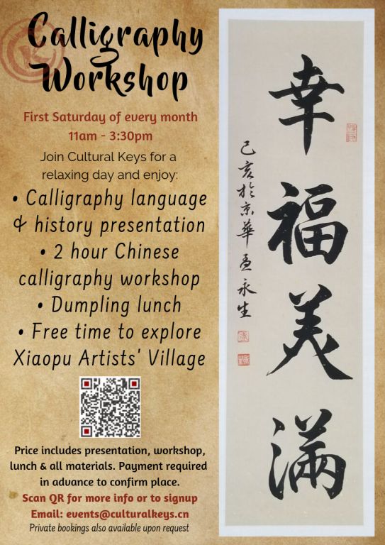 Our workshops are available for booking by private groups, companies, groups, hotels, schools or embassies, both at our centre or at a location convenient for you. We also hold monthly Chinese culture workshops that are open to everyone!