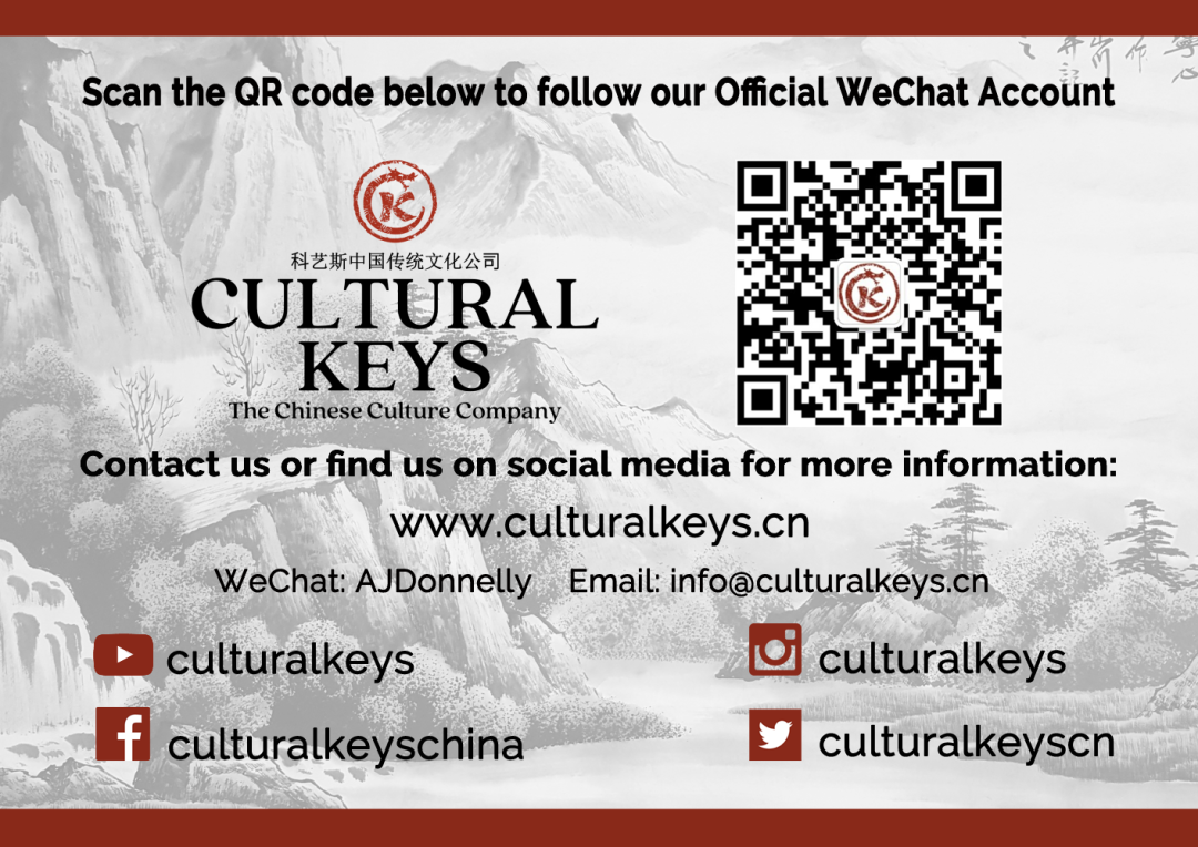 Cultural Keys Chinese Culture Company helps people access, experience and enjoy traditional Chinese culture. To stay up-to-date with all Cultural Keys' news and events, please click our name above and follow our Official WeChat Account!