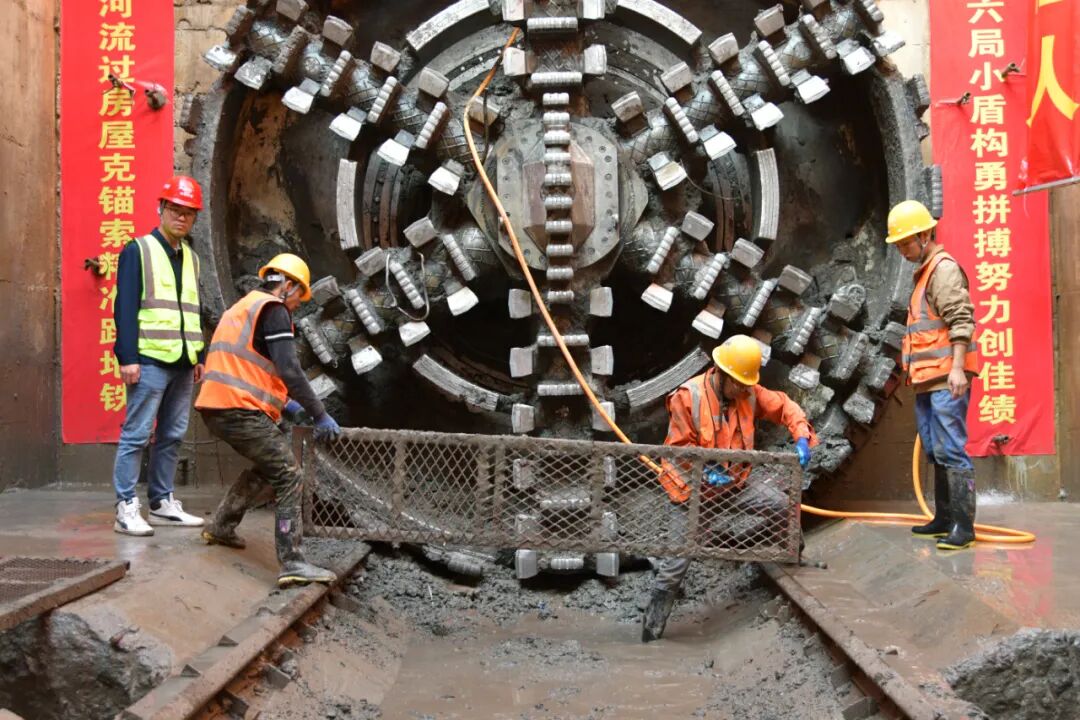 最终,两台盾构机顺利实现贯通,同时创造了西南地区小直径盾构单班最高掘进18米、单月掘进最高463米的好成绩。并成功安全穿越地铁、高架桥、河道、市政下穿隧道等多个重大风险源,解决了分体始发、突遇障碍物、穿越小沉井等重难点问题。