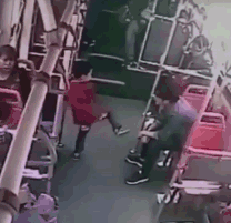 而这一切就发生在小男孩妈妈眼皮底下,却没有一句管教的话,