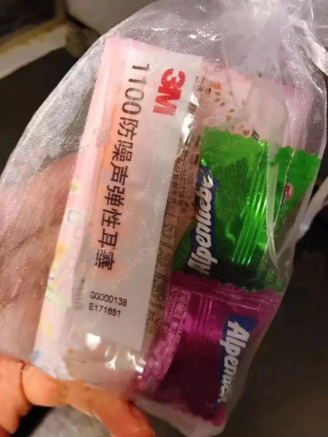 于是她给大家写了一个卡片,还准备了一些小礼物,里边装着耳塞、糖果。