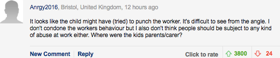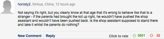 “这个孩子看起来要去打这名超市员工,但我并不支持这名工作人员的做法,
