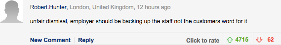 “这太不公平了,雇主不应该凭借顾客的一面这词而解雇自己的员工。”
