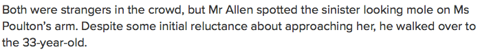 今天,他无意中看到了Poulton胳膊上的黑痣,心中就有一种不详的预感,