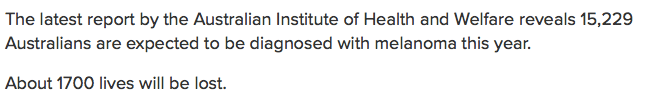 去年有1800多名澳洲人死于黑色素瘤,并新增1.33万名皮肤癌患者,