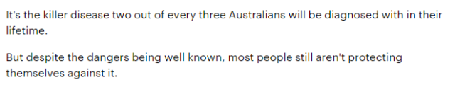 他患上皮肤癌和过去在澳洲成长期间没有擦防晒霜有很大关系。