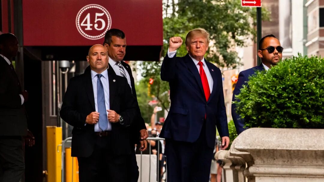 当特朗普从离开纽约州总检察长办公室时,路旁已经聚集了不少他的支持者,这些人用统一的口号大声呼喊,表示表达支持。与此同时,另一波特朗普的反对者,来到特朗普大厦前,高举起“逮捕特朗普”的横幅。而特朗普继续通过社交媒体不断的发布内容激化矛盾。
