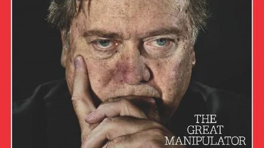 正是因为与媒体的关系到位,时代周刊的一期封面人物就是班农,标题是:“伟大的操控者”。