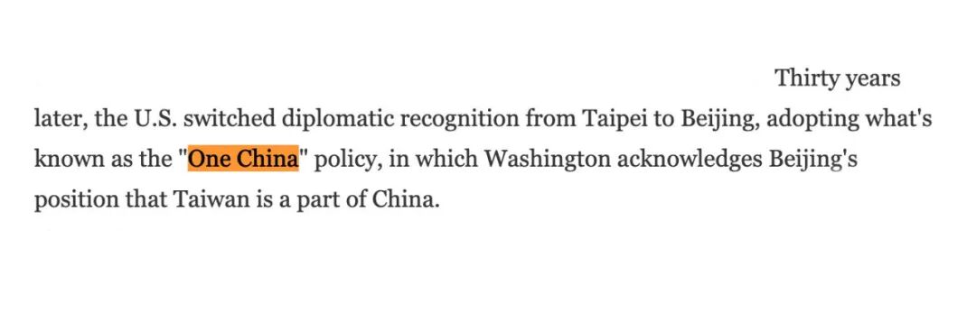 随后,各大媒体的News Alert突发新闻推送接踵而至。但在报道佩洛西窜访台湾的这条新闻时,美国媒体不得不写小作文给民众先科普一下,美国的一中政策的历史背景,才能把事情给说清楚。毕竟,大部分美国人连台湾在哪都不知道。
