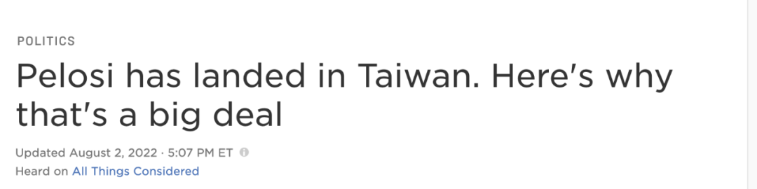 全国公共广播电台NPR的文章标题是《佩洛西降落台湾,为什么这是件大事》
