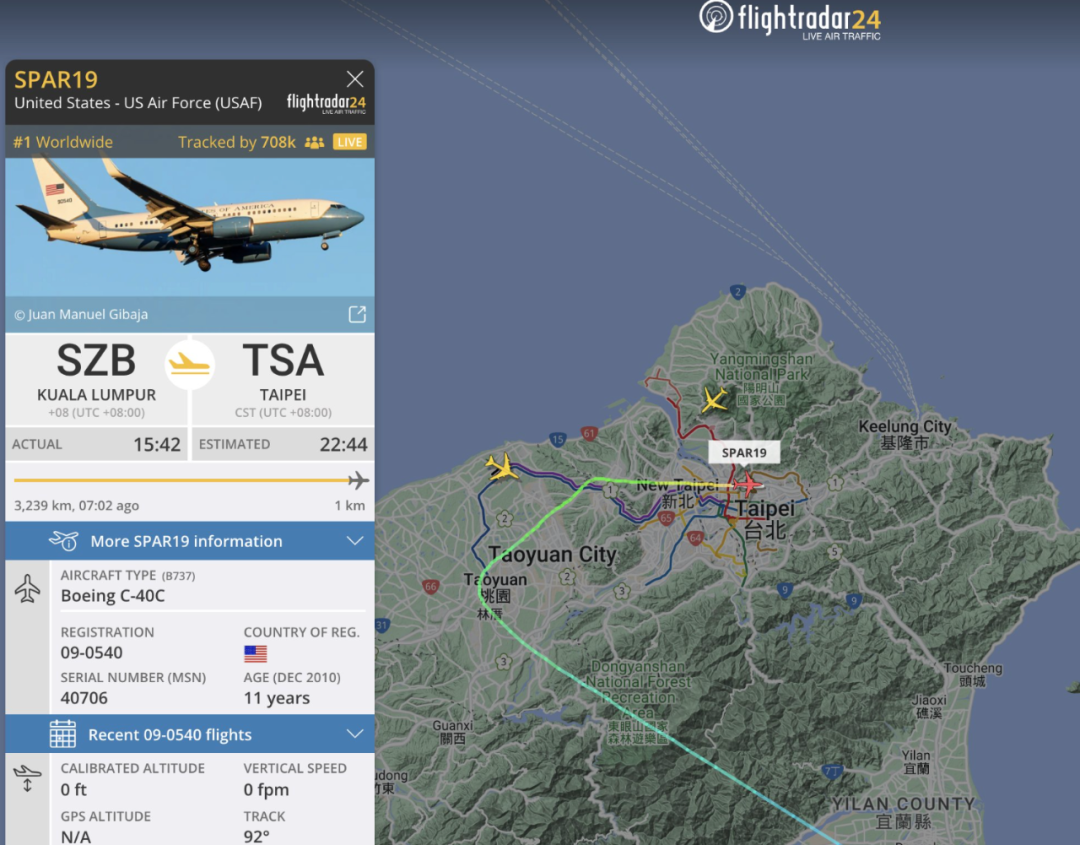 从佩洛西7月29号离开华盛顿后,全球网友紧盯佩洛西飞机五天,在北京时间2号晚上10点44分,佩洛西窜访台湾成为事实,她乘坐的美军商务机降落在了松山机场。