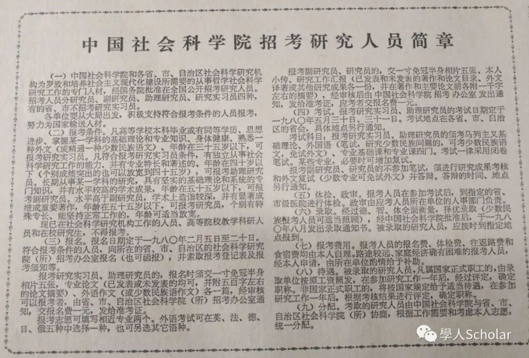 1979年12月9日《光明日报》 发布中国社会科学院招考研究人员简章
