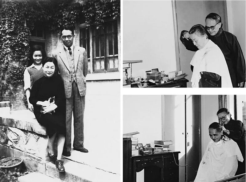 1950年,钱杨与爱女钱瑗于清华大学宿舍(我们仨,左);钱杨相互理发,杨绛能用电推子,钱钟书会用剪刀(右)(时报出版)在《写<围城>的钱锺书》一文中,杨绛提供了这么一种说法:“他(按,指钱锺书)曾经很认真地跟我说:‘假如我们再生一个孩子,说不定比阿瑗好,我们就要喜欢那个孩子了,那我们怎么对得起阿瑗呢。’”杨绛于是感慨:“提倡一对父母生一个孩子的理论,还从未讲到父母为了用情专一而只生一个。”换言之,也就是因为钱锺书太爱圆圆了,所以不忍再生一个来摊薄这种爱。这应该也是可能的。不过,除此之外,我想起码还有这两点原因:首先,钱锺书跟杨绛都是成绩斐然而且乐此不倦的学者作家,因而他们不太愿意将有限的精力过多的分派到子女抚养上去。杨绛在《回忆我的父亲》一文中,记载过这么一件事,说她十来岁的时候,“已经不贪玩而贪看书了。父亲一次问我:‘阿季,三天不让你看书,你怎么样?’我说:‘不好过。’‘一星期不让你看呢?’我答:‘一星期都白活了。’父亲笑着说:‘我也这样。’”而在《干校六记》“误传记妄”中,又记了这么一件事:说是在干校时,有一天“默存过菜园,我指着窝棚说:“‘给咱们这样一个棚,咱们就住下,行吗?’ 默存认真想了一下说:‘没有书。’ 真的,什么物质享受,全都罢得;没有书却不好过日子。”设想,有这样人生观的人,怎么可能身边老是有一群孩子在丫丫呜呜?其次,我猜想:钱锺书不像再要孩子,还有个原因就是鉴于杨绛生圆圆时的艰难。前面提到过,杨绛生圆圆时晚产又有些难产,孩子都是用钳子夹出来的。自然受了不少苦,在《我们仨》中,她是这么回忆的——“ 等我醒来,发现自己像新生婴儿般包在法兰绒包包里,脚后还有个热水袋。肚皮倒是空了,浑身连皮带骨都是痛,动都不能动。我问身边的护士:‘怎么回事儿?’护士说:‘你做了苦工,很重的苦工。’另一护士在门口探头。她很好奇地问我:‘你为什么不叫不喊呀?’她眼看我痛得要死,却静静地不吭一声。我没想到还有这一招,但是我说:‘叫了喊了还是痛呀。’她们越发奇怪了。‘中国女人都通达哲理吗?’‘中国女人不让叫喊吗?’护士抱了娃娃来给我看,说娃娃出世已浑身青紫,是她拍活的。据说娃娃是牛津出生的第二个中国婴儿。我还未十分清醒,无力说话,又昏昏睡去。”
