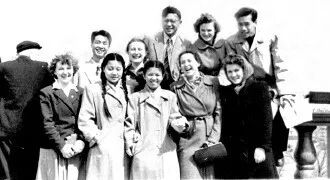中苏青年学生的真挚友谊,最后一排左一为江平