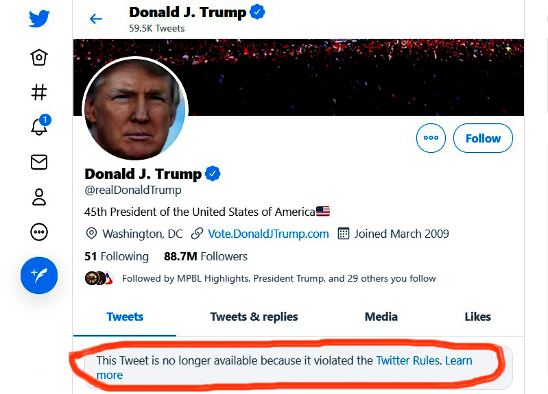 还有一个说法,“从美国宪法第一修正案的角度出发,对言论自由构成侵犯的主体是政府行为者,推特和其他社交媒体属于私人商业机构,并不具备侵犯言论自由的主体资格。就此而言,社交媒体全面封杀川普虽然在事实上限制了川普的言论,但并不在法律意义上伤害川普的言论自由权”。这是一个狡辩,这就等于一方承认川普的自由发言受到限制,一面又说,他的言论自由没有受到伤害。这就好比,人家拆了你的屋,你还会说他在法律上并没有禁止你进自家大门吗?