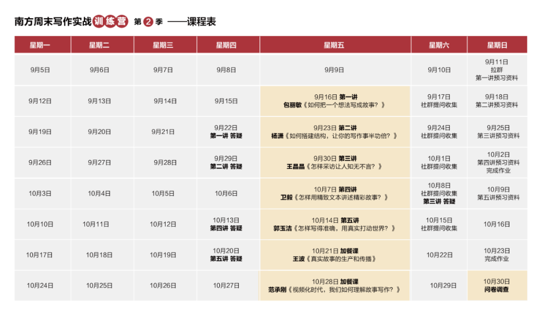 1、 南方周末写作实战训练营第二季内容和第一季相同吗?