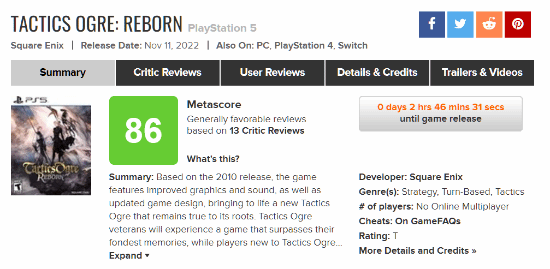 《皇家骑士团:重生》将于11月11日正式发售,目前该作的媒体评分已经解禁。MC站目前均分86分,截止撰文收录的13家媒体全部给出了好评。