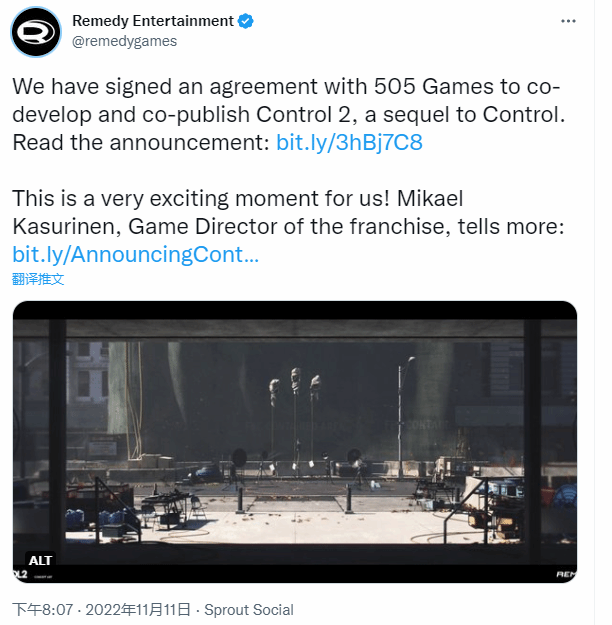 Remedy官方发布推文,宣布其已经与505Games签署协议,共同开发并发行《控制》的续作《控制2》。项目目前处于概念阶段。![]()
