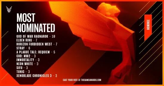 其余游戏及提名奖项数: