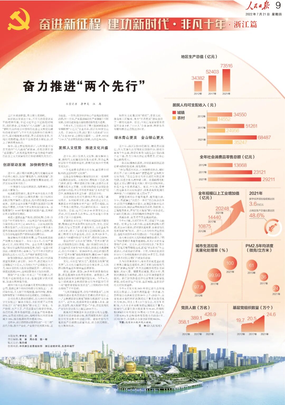 回首浙江发展这十年,不平凡的是奋进实干的精神风貌,牢记习近平总书记的殷切嘱托,勇担使命,忠实践行“八八战略”、奋力打造“新时代全面展示中国特色社会主义制度优越性的重要窗口”;不平凡的是探路先行的责任担当,面对错综复杂局面,开启系统性变革,实现历史性跨越,高水平全面建成小康社会,站上了新的更高起点。