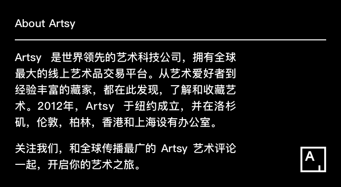如果你对在 Artsy 网站购买艺术品有任何疑问,请给公众号后台留言, Artsy 收藏专家会与你取得联系。