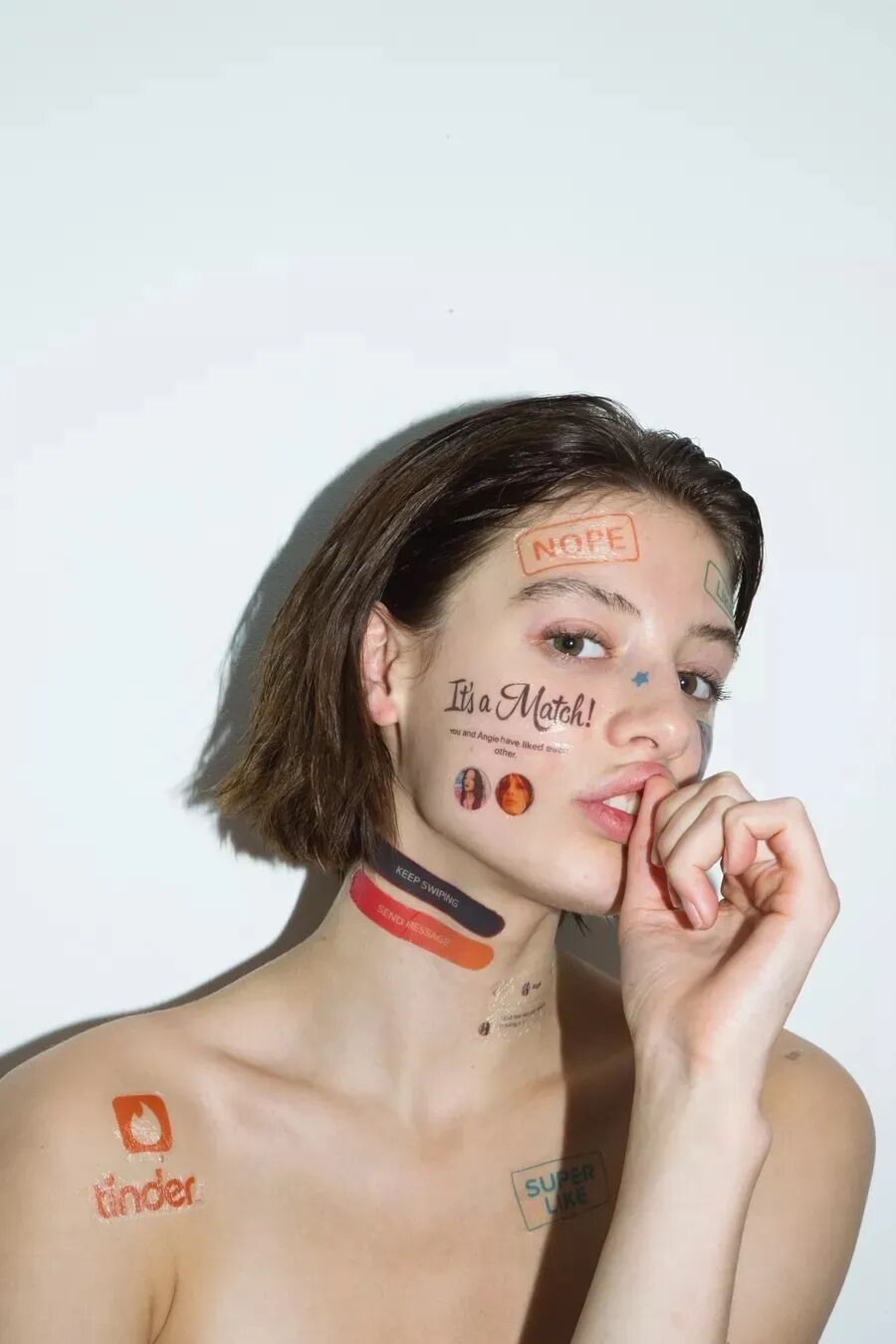 在纽约的 Jason Wu 完成实习后,拥有时尚和视觉艺术背景的台湾艺术家江宥仪(John Yuyi)开始制作与销售临时纹身,以筹措签证的资金。风格洗练的纹身现在是 Yuyi 摄影艺术实践的组成部分,她的拍摄对象——有时是模特,有时是她自己——会被纹身覆盖,用以探讨消费文化和社交媒体的影响。