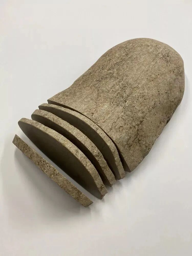 Palyanitsia 成为了一种区分乌俄的象征(shibboleth)。受到这种象征意义的启发,卡德洛娃开始收集这些石头。在保留一部分原封不动之外,艺术家将其均匀切成块状和片状。雕塑将在威尼斯展出到6月30日——展览和该雕塑系列同名,由 Galleria Continua 策划,与双年展同期举行。这些雕塑既简约又格外地掷地有声,以朴素的语言诉说着生命的颠沛流离。