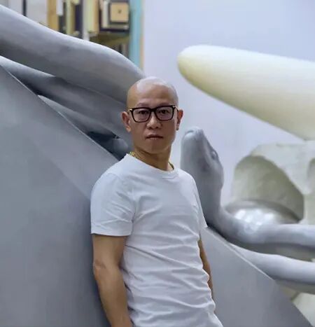 和刘韡的这场对话发生在他位于北京近郊城市更新带上的工作室内,彼时正值他在白立方伦敦柏蒙西空间的个展“裸体”(Nudità)闭幕,谈话也围绕这场展览进行。关于创作,关于疫情,关于管制,以及作品中所表达的当下的原始的寓言的异质的“新统治”。偶有出神的间隙,我盯着工作室杂物堆里藏匿着的一头金色司芬克斯摆件,突然冒出一个词,野气未散。这或许就是刘韡的“寓言”,试图把你拉近自己的迷宫,试图以一个谜的方式,迎向启示。