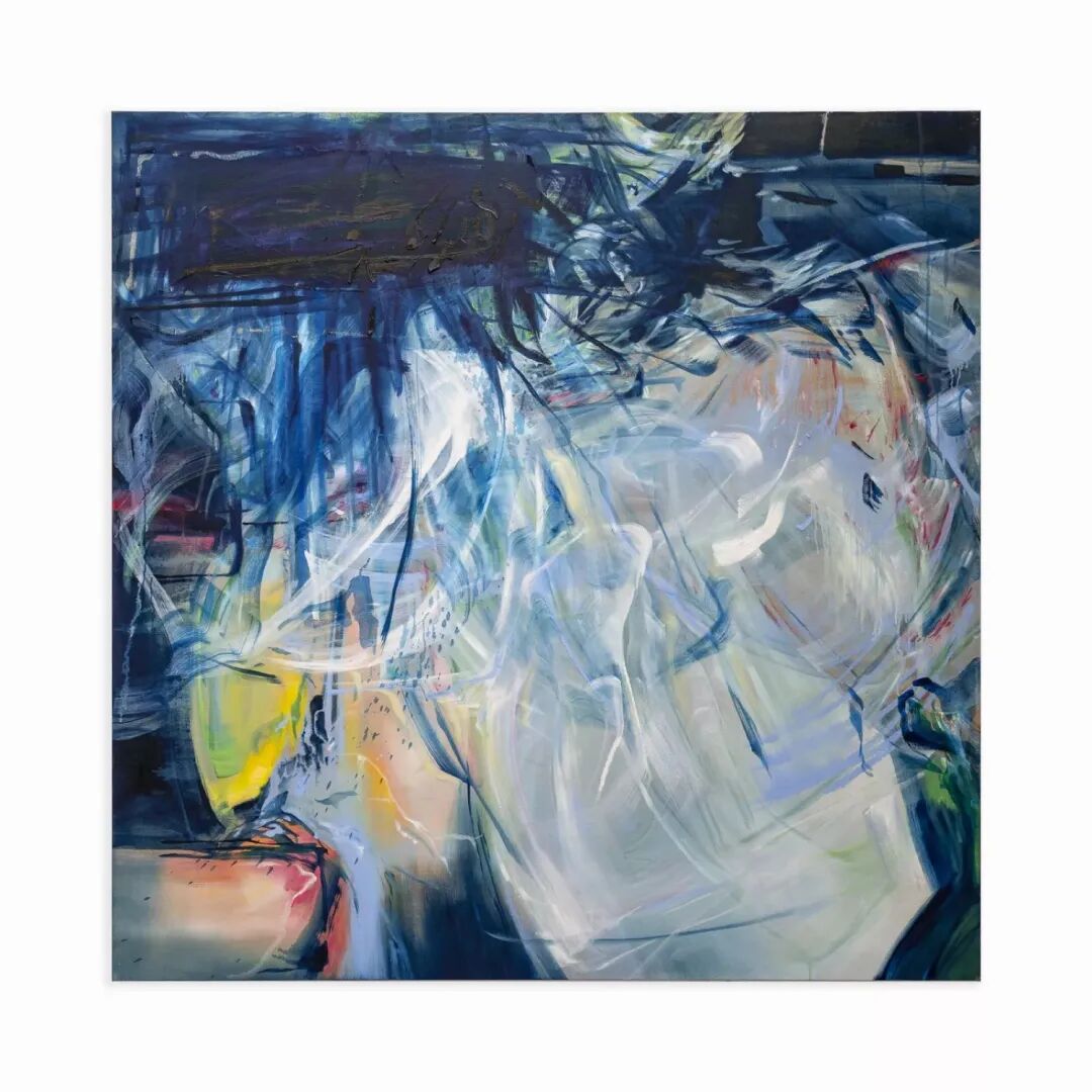 这位出生在香港的艺术家用油画、油画棒和颜料在在亚麻布上不断反复作画,无常的笔触堆叠起精力充沛的构图,大胆的色调也应运而生——其中尤为特别的是她的夜蓝色。