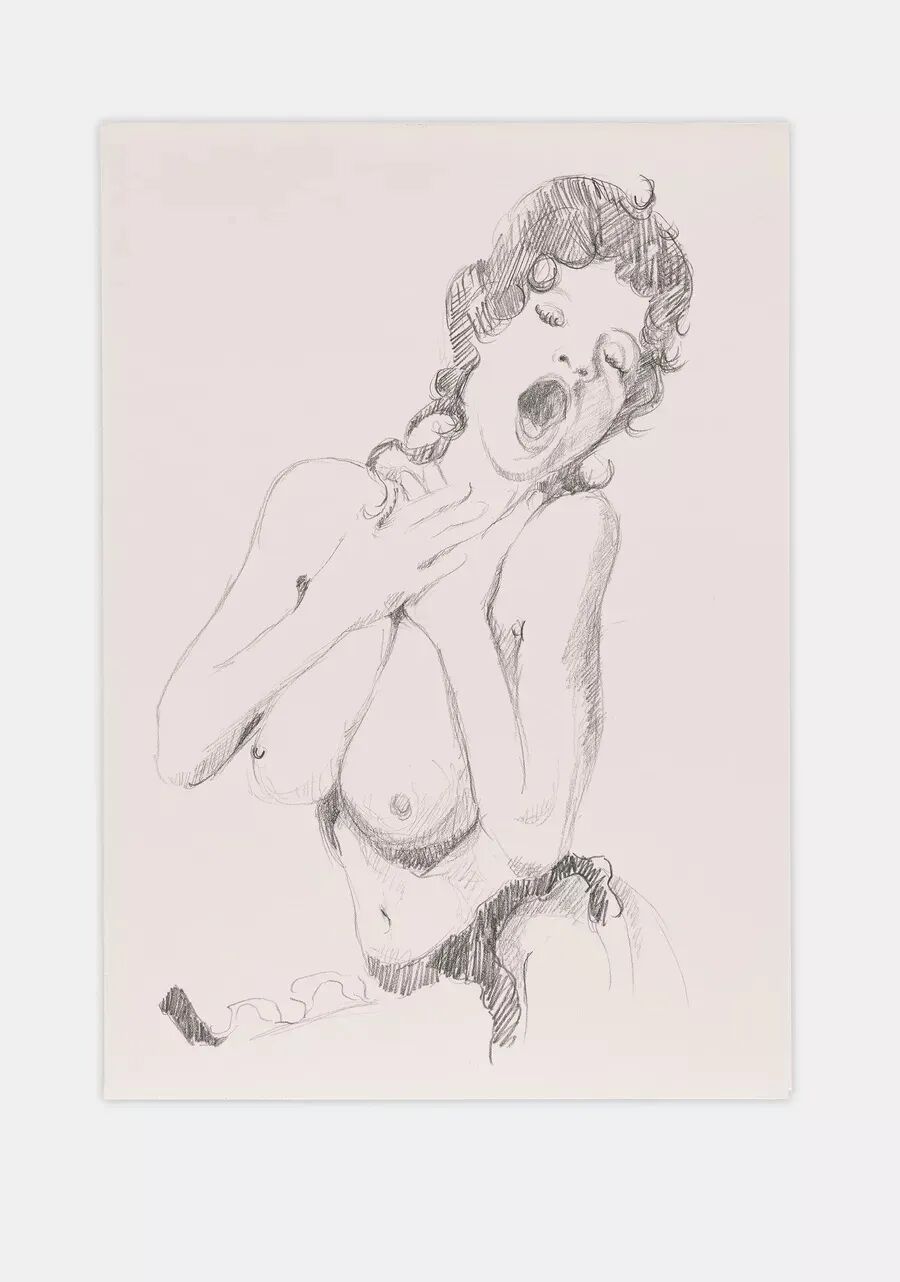 “Afternoon’s Darkness”中的绘画和素描偏离了克里奇洛通常的小规模创作。这位29岁的艺术家在放大的亚麻布表面上并列呈现性、控制和狂喜的主题,而她的调色板则在场景上蒙上了一层夜色烛光。