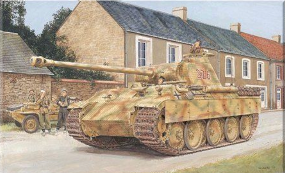 ◇ 一幅反映诺曼底战役德军装甲部队的艺术作品,小里宾特洛甫是坦克左边胳膊缠绷带的那位