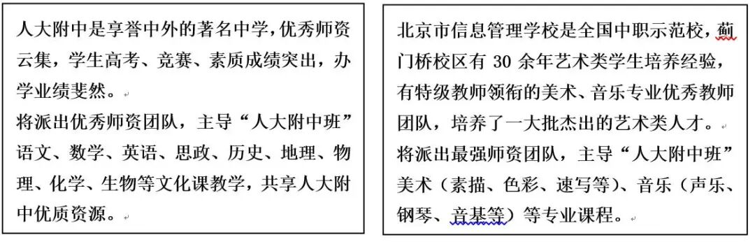 海淀区教委决定,2020年开始,北京市信息管理学校和人大附中发挥各自办学优势,合办艺术类综合高中——“人大附中班”。该班学生为普通高中学籍,培养方向为美术绘画、音乐,参加艺术类普通高考,升入高水平艺术院校或综合大学艺术院系。