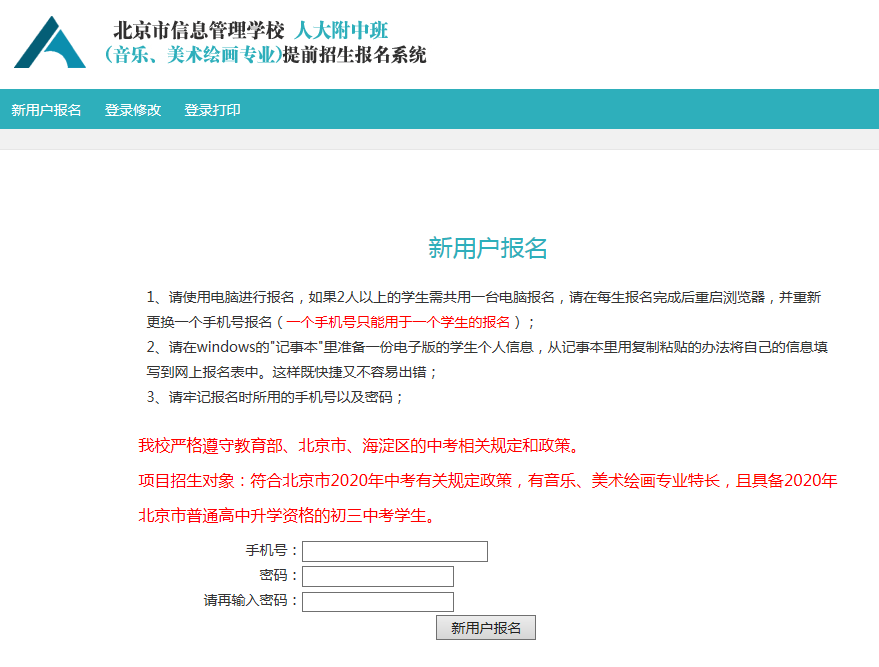 1.报名方式:通过网络报名(http://58.118.166.18/xgtcs/web/);在北京市信息管理学校、人大附中、人大附中翠微学校网站有相关链接。