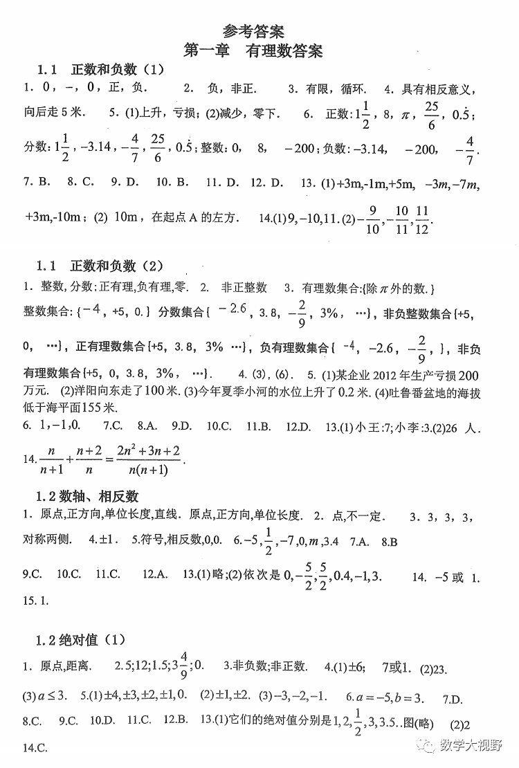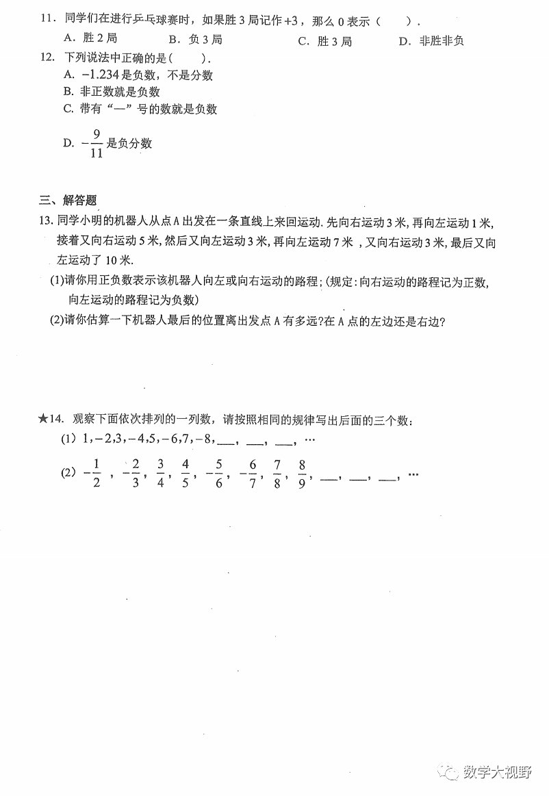 人大附中2019-2020学年七年级(上)期中数学试卷附打印版