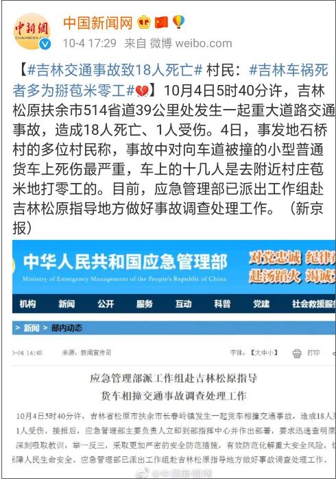 就在十月四日那天,吉林的某个小村里发生了一起车祸,18条鲜活的生命就永远留在了这里。