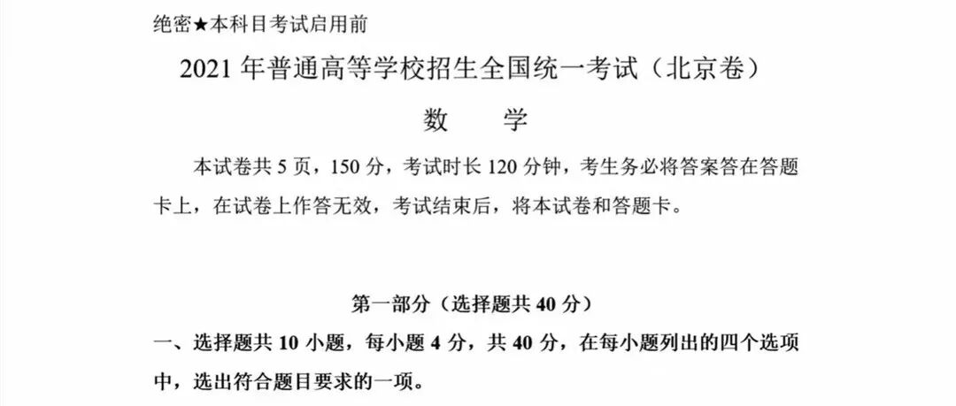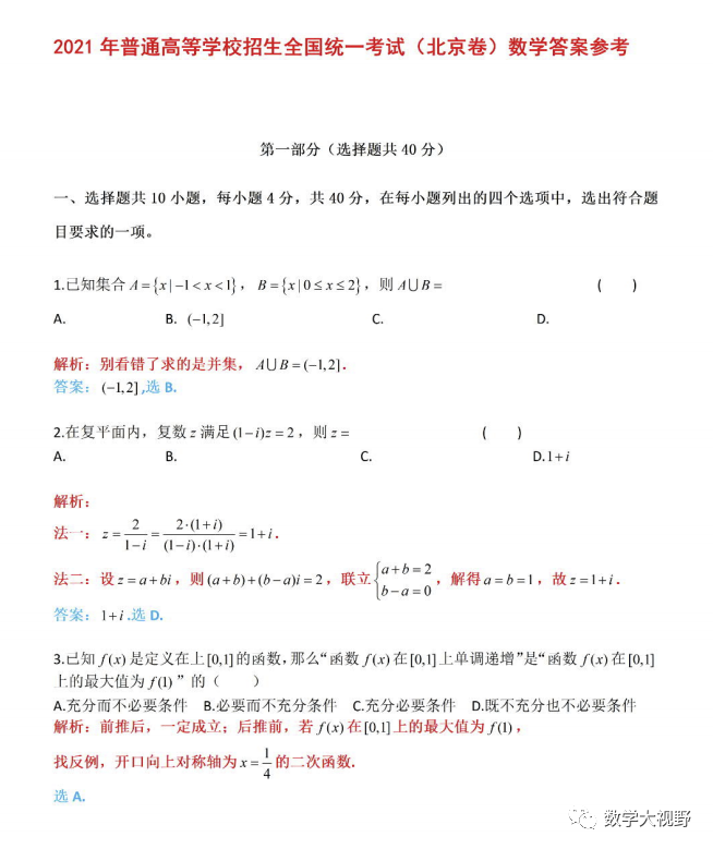 仅供参考。2021年北京市高考数学试卷