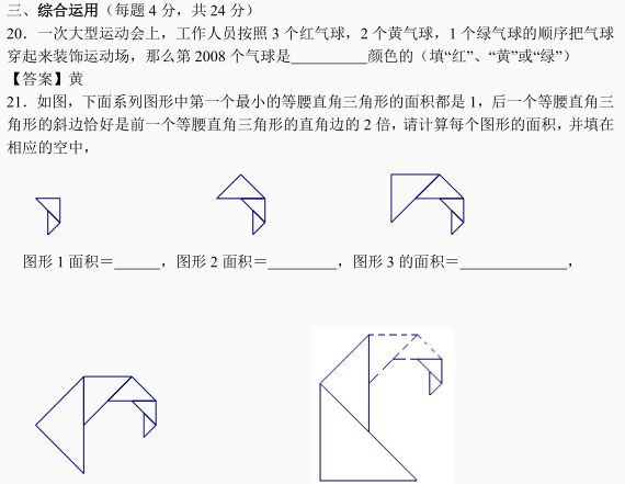 3、数学知识考察范围是五年级和六级级课本知识为主,并引申出一些拓展题,如行程、工程和组合图形求面积为压轴题,还会有一小部分初中知识;