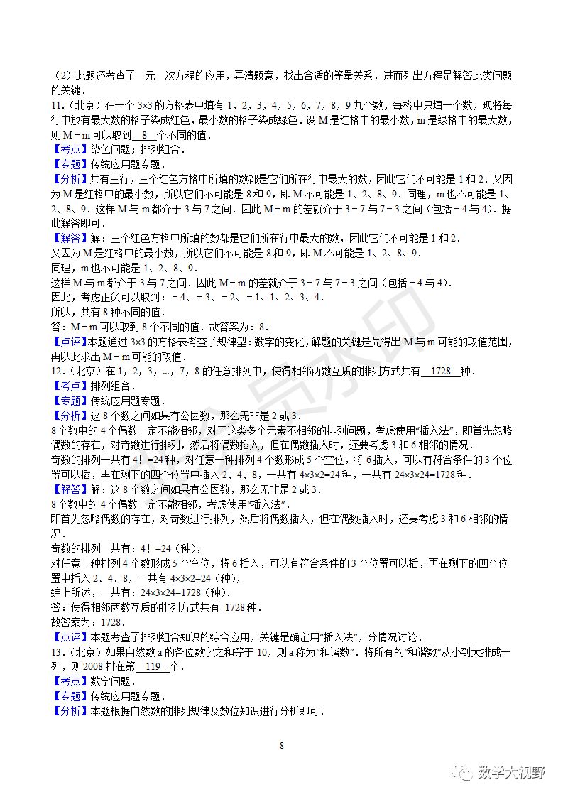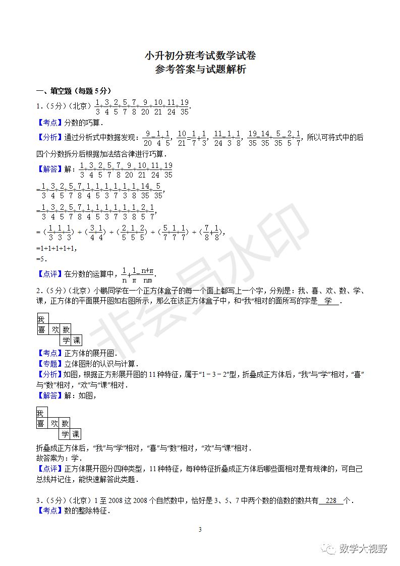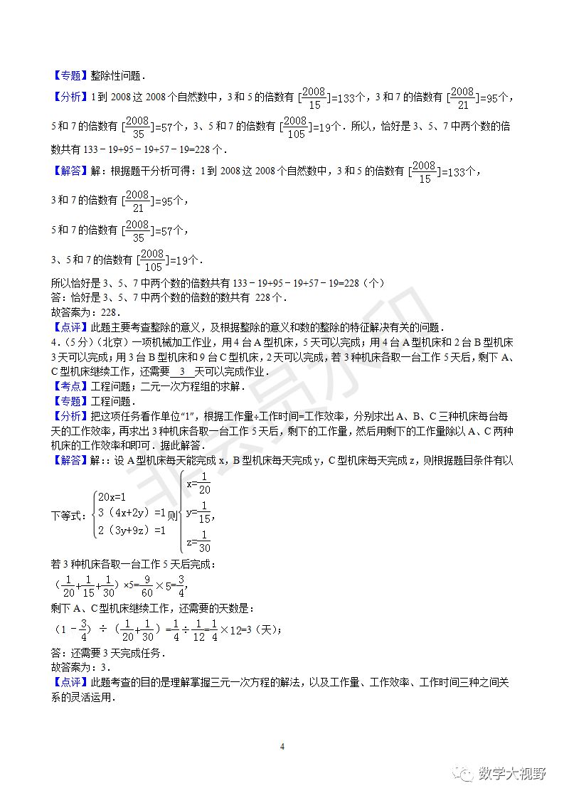4、市重点学校比较多的涉及计数、数论以及新初一的有理数的相关概念和性质;