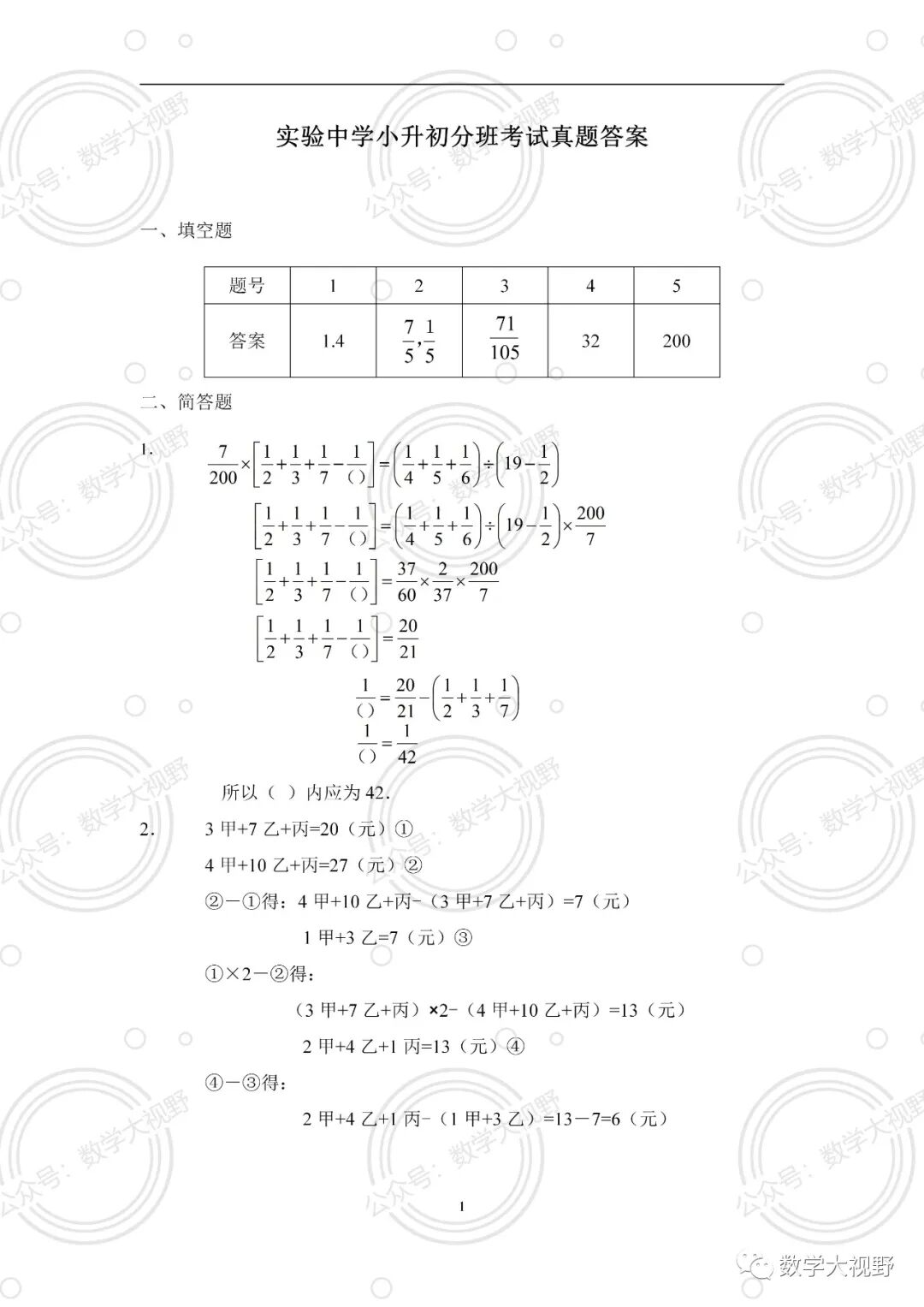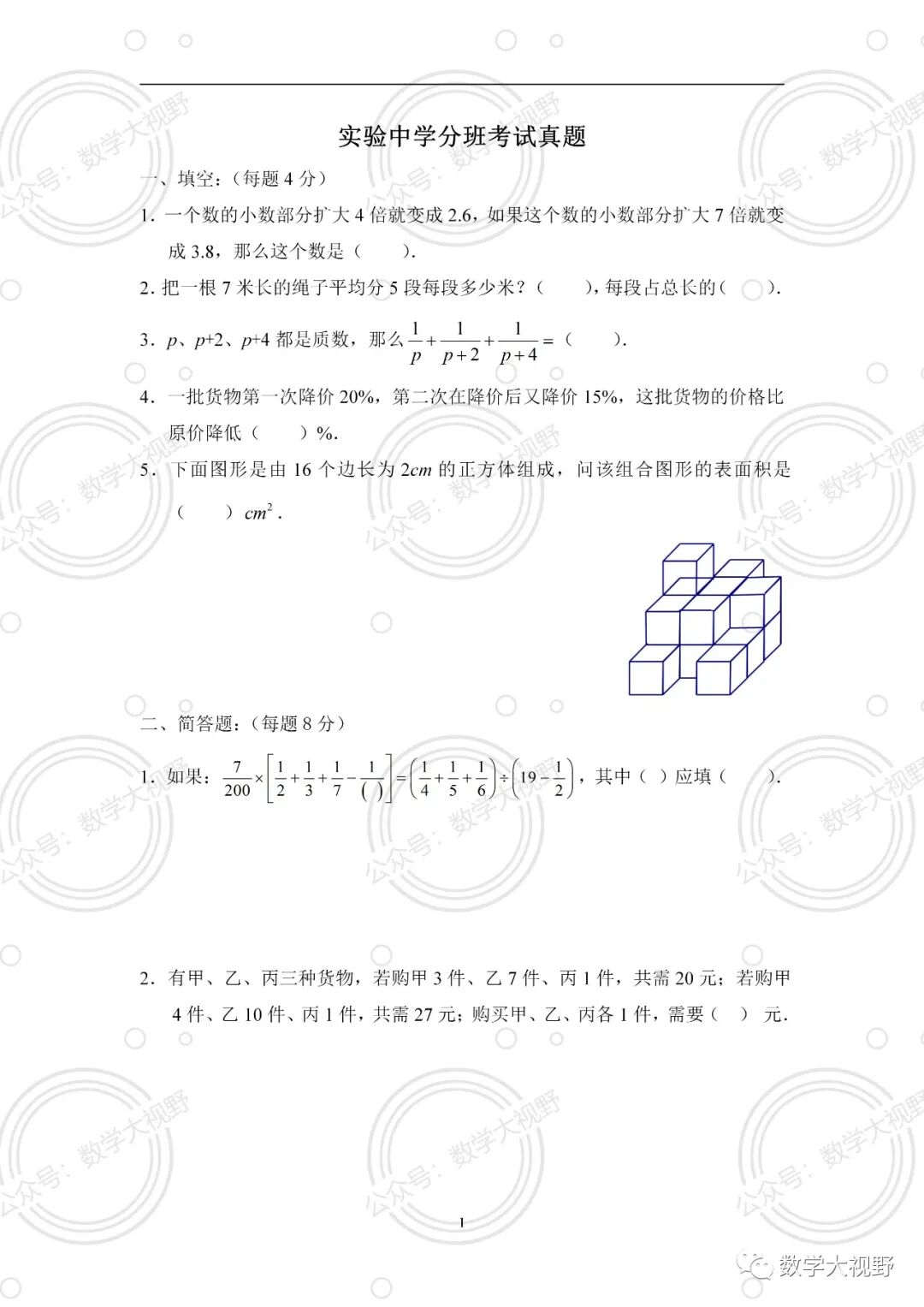 更多小升初分考考试试题,