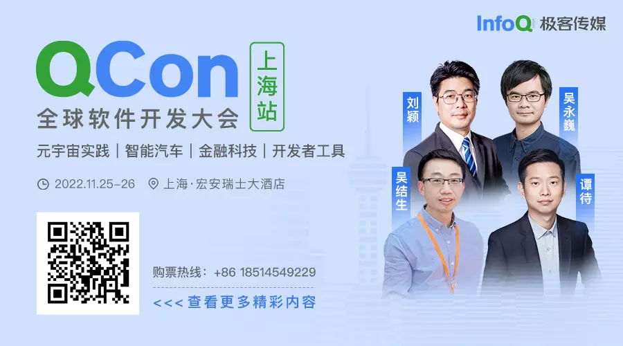 11 月 25 日 -26 日,QCon 上海站即将在线下与大家见面。元宇宙实践、LakeHouse 落地、金融科技、智能汽车、API 治理等十余个热门技术专题,50+ 大厂专家技术案例现场分享,点击底部【阅读原文】直达大会官网,查看更多精彩内容。