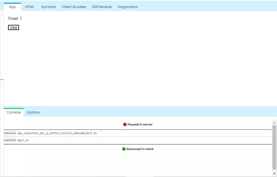 Qwik 的在线代码运行平台可以让开发者了解到程序代码是如何被切割打包的,还是用前面的计数器为例,客户端的打包方式如下: