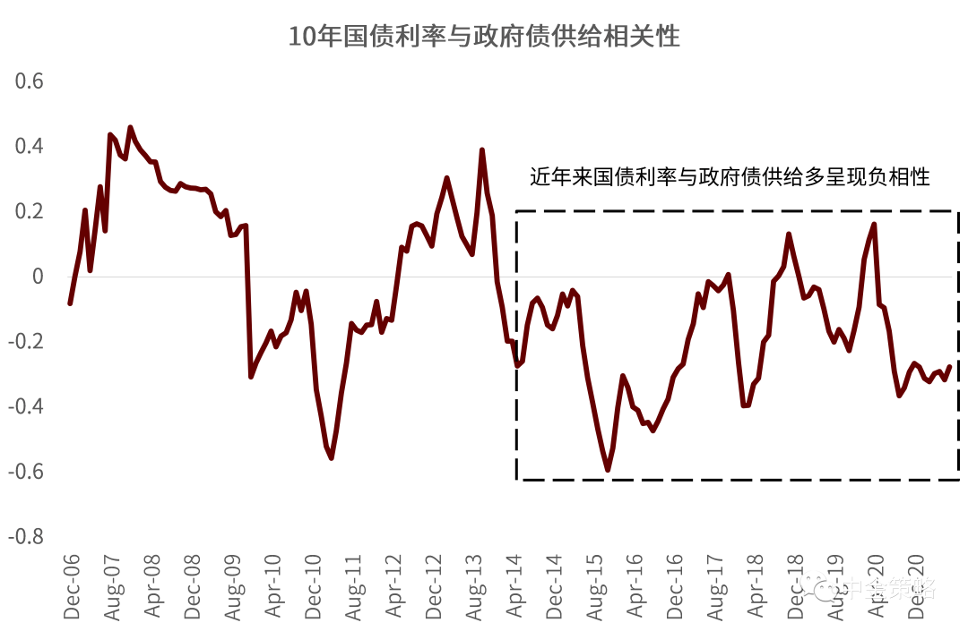 图表9:国债利率与政府债供给相关性不稳定,近年来甚至呈现一定的负相关关系