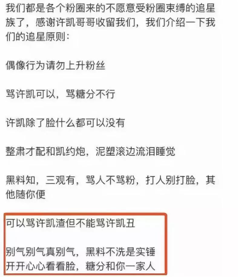 但即使是这样,也抵不住大批跪舔许凯颜值的粉丝,不过迷妹们对偶像是渣男的认知倒是很清醒,她们自称糖分(躺粉),意思就是:我们只看脸,其他躺平任你嘲。