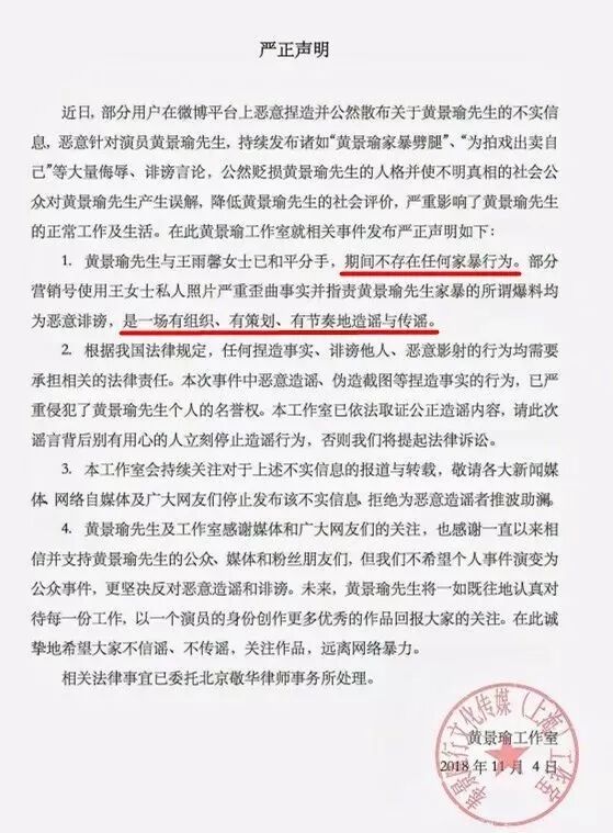 不过这些基本都被黄景瑜的工作室一纸否认了。