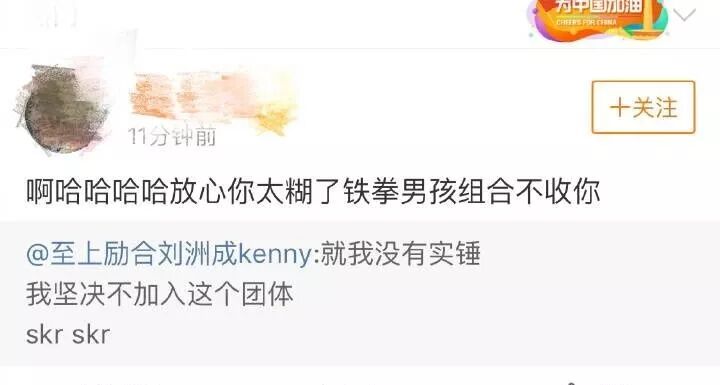 还有一个因为太糊+蹭热度而不配在铁拳男孩组合里拥有姓名的戏精选手——刘洲成。