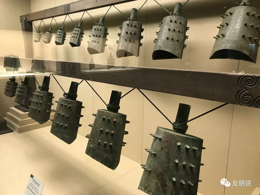 晋候稣(su)钟,这个钟有一段传奇故事。大概八十年代左右,山西曲沃县发现一处古墓,当北京大学和山西考古所工作人员赶去的时候,却发现了盗墓的痕迹,墓室中几乎已经不剩什么有价值的文物了,但考古人员不甘心,重新对墓区进行了仔细搜索,最终功夫不负有心人,在不起眼的角落,发现了原属于这套编钟两端的甬钟各一个,经过清理,钟面上显出了铭文,并且是连续铭文,如此便可以断定,这组编钟,缺少的正是盗墓贼盗走的中间一部分。