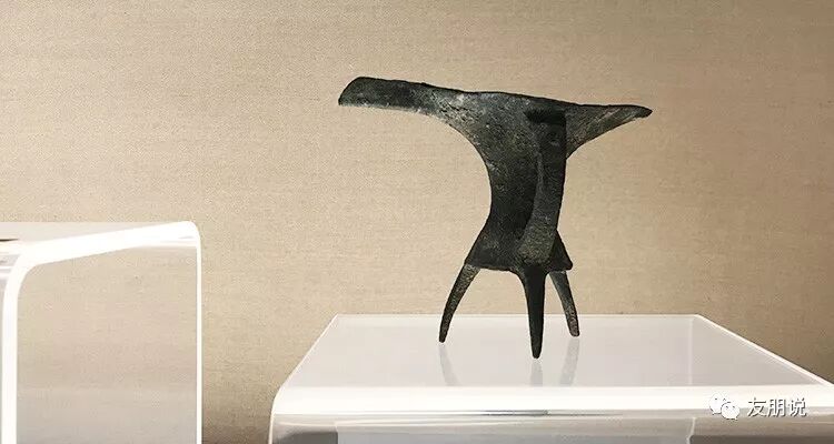 这是斝(jia),日后会发展到很巨大。我们都知道青铜器是权利和地位的象征,怎么体现这一点呢?主要是把青铜器作为礼器使用。周代时崇尚礼,孔子也曾说过:克己复礼,他希望能够恢复礼制,因为孔子认为周公时代,社会最为有序,但到了他生活的春秋中期,已经开始礼崩乐坏了。在古代,巫师权利很大,一定情况下甚至超过了皇权,因为巫师是代表天说话。在更早的时期,我们主张天人合一,人们可以领会天意,以后逐渐发展,天与人的沟通开始变得不那么畅通了,这就需要有一个中间人的存在,这个中间人就是巫师,然而巫师也不能随随便便和天沟通。好比三国中的诸葛亮借东风,与天沟通的时候需要有祭坛、法剑等道具进行辅助。另外古人相信酒能够通天,可以通过酒气与天沟通,斝后来就发展成一种与天沟通的祭祀中的特定礼器。